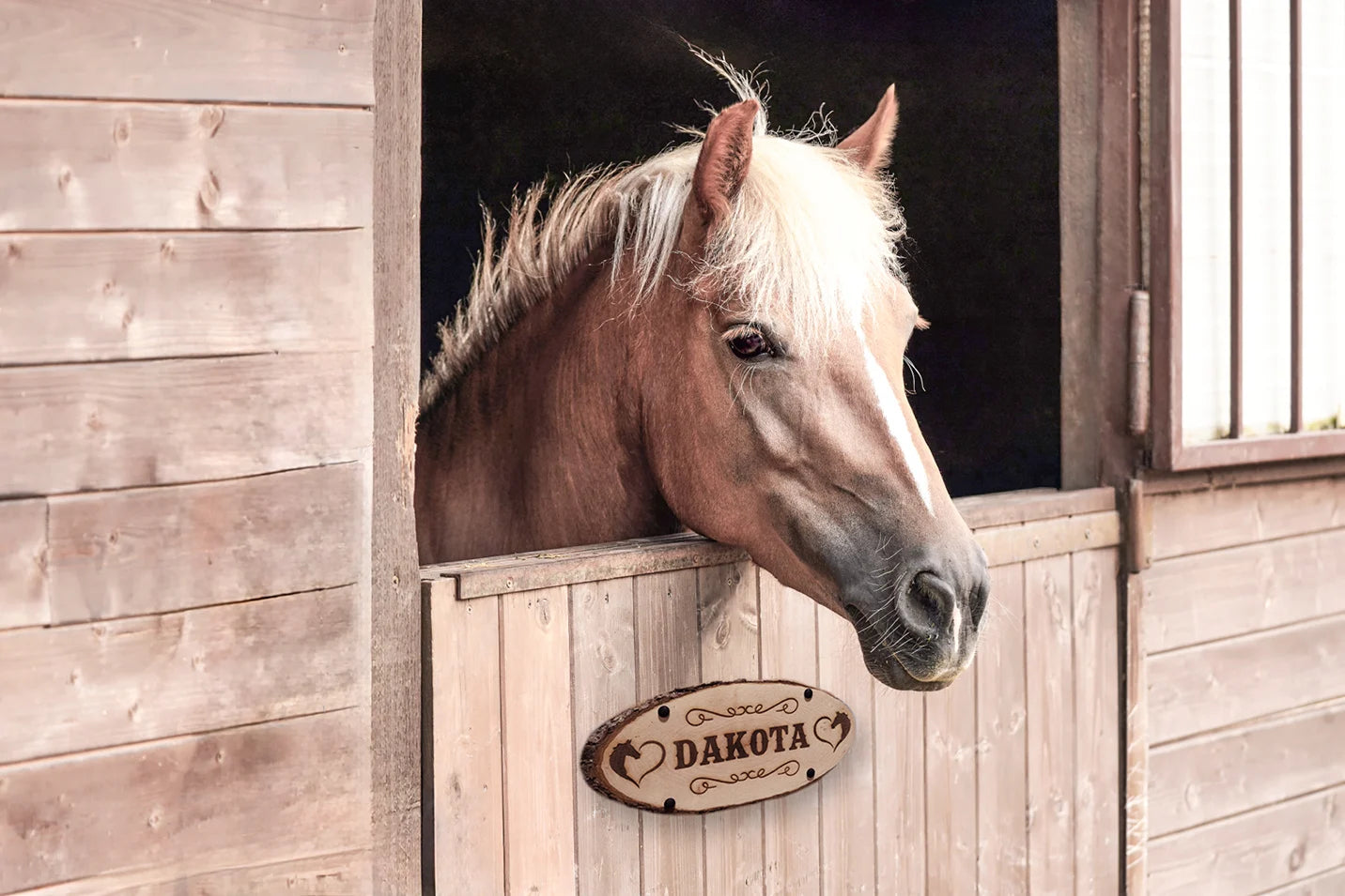 Die feine Lasergravur sorgt für ein klares, langlebiges Schriftbild und unterstreicht den natürlichen Charakter des Holzes. Ideal als stilvolle Kennzeichnung, Geschenk für Pferdefreunde oder besonderes Highlight im Stall.