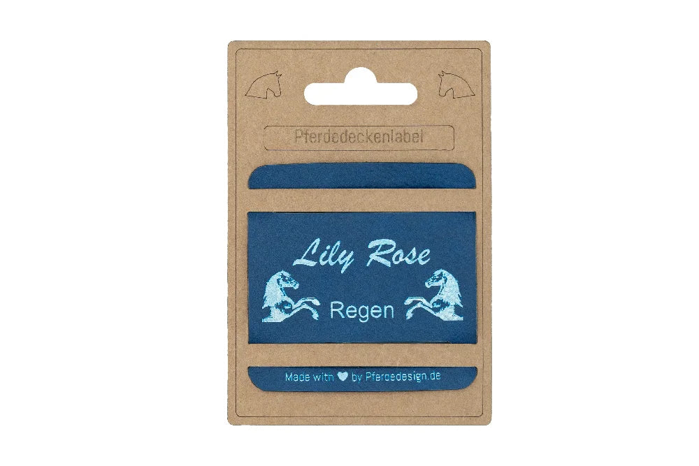 Die Labels bestehen aus robustem, wetterfestem Material und bleiben auch im täglichen Stallgebrauch gut lesbar. Einfach anzubringen und ein echter Hingucker an jeder Pferdedecke!