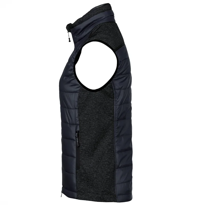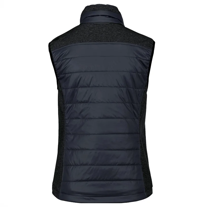 Die personalisierbare Weste verfügt über einen verstellbaren Saumabschluss mit Tunnelkordelzug und Stoppern. Sie ist aus einem Materialmix aus atmungsaktivem Micro-Ripstop mit Wattierung und pflegeleichten Kunstfasern sowie Einsätzen aus dehnfähigem Softshell-Material hergestellt.
